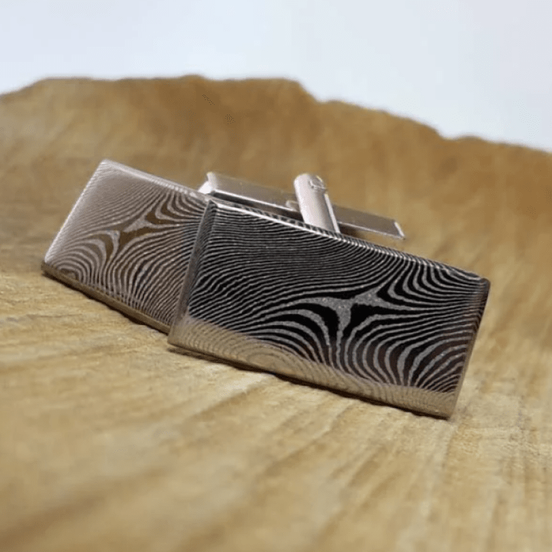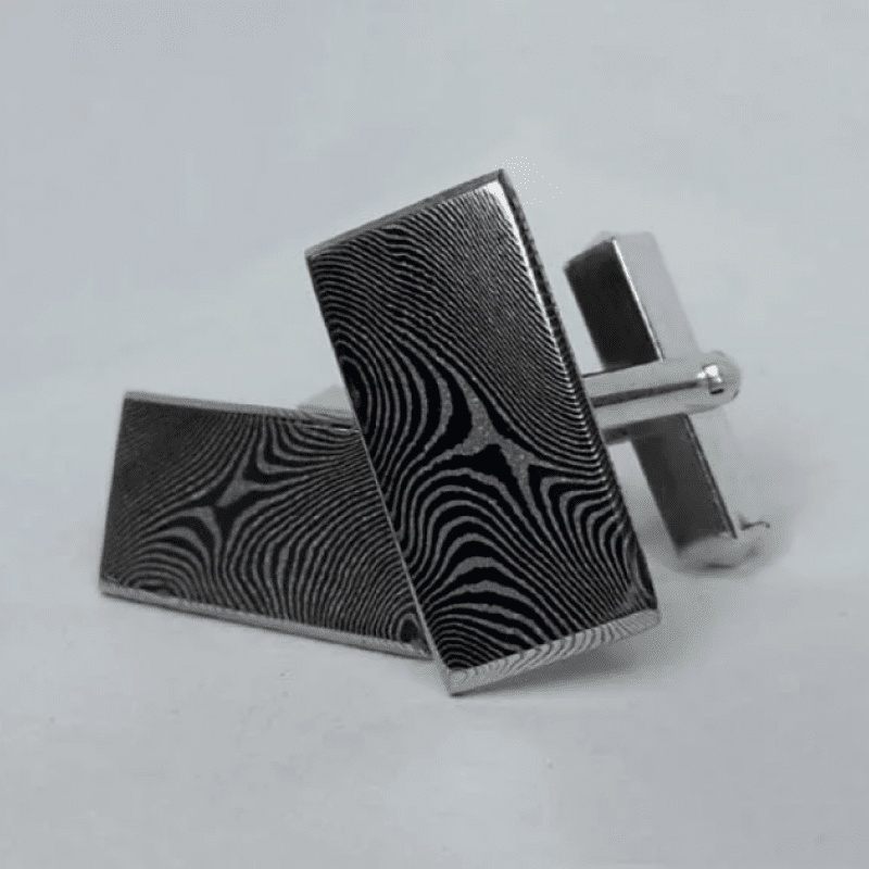 DAMAŠKOVÁ OCEL — spojení dvou druhů oceli do kompaktního celku, který po zpracování a proleptání vytváří unikátní vzory. Nejčastěji spojované materiály zahrnují zlato, stříbro a palladium. Rozmanité techniky zpracování a kombinace těchto materiálů přinášejí neopakovatelné šperky od Kotyzy.