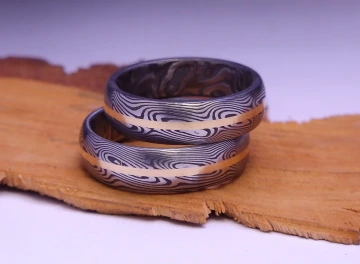 TYP Snubní prsteny Damasteel se zlatým pruhem