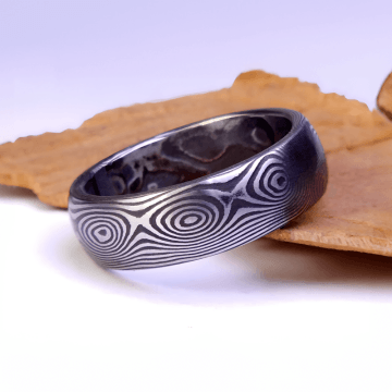DESIGN Prsten je žárově černený, vzor výrazný, lept spíše hrubší.