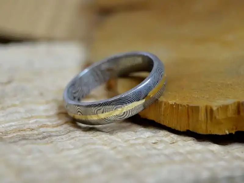 TYP Snubní prsteny Damasteel se zlatým pruhem