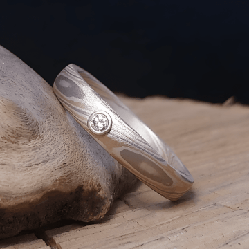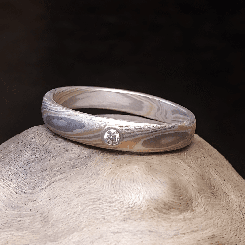 MOKUME GANE — tradiční japonská technika vrstvení a spojování drahých kovů do jedinečného celku. Materiály, které se nejčastěji kombinují, zahrnují zlato, stříbro, paladium a jejich slitiny. Různorodé kombinace kovů a precizní zpracování vytvářejí neopakovatelné šperky od Kotyzy.