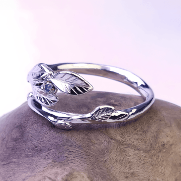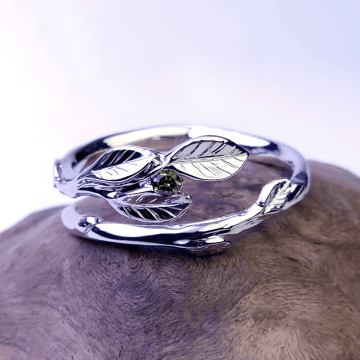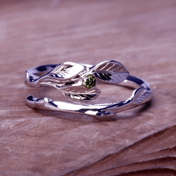 DESIGN Ručně modelovaný prsten ve tvaru stonku s lístky. Prsten může zůstat ve formě otevřené „spirálky“, nebo je možné jej vyrobit napevno, se souběžně spojeným stonkem.