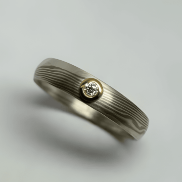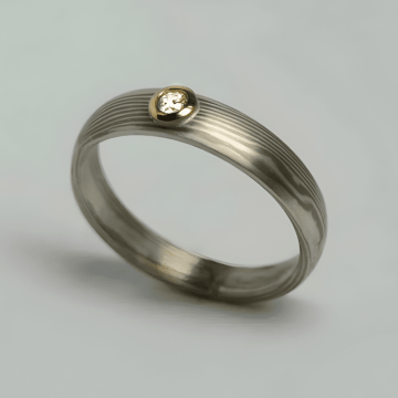 MOKUME GANE — tradiční japonská technika vrstvení a spojování drahých kovů do jedinečného celku. Materiály, které se nejčastěji kombinují, zahrnují zlato, stříbro, paladium a jejich slitiny. Různorodé kombinace kovů a precizní zpracování vytvářejí neopakovatelné šperky od Kotyzy.